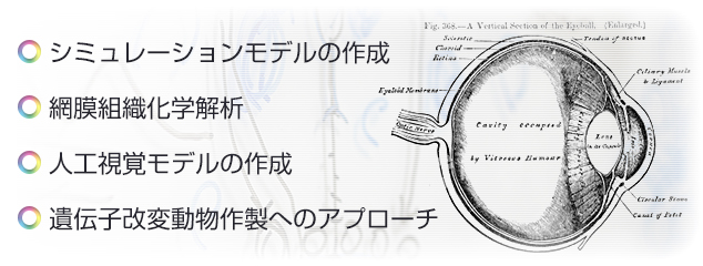 人工網膜作成や網膜再生による視覚再構築を目指します。